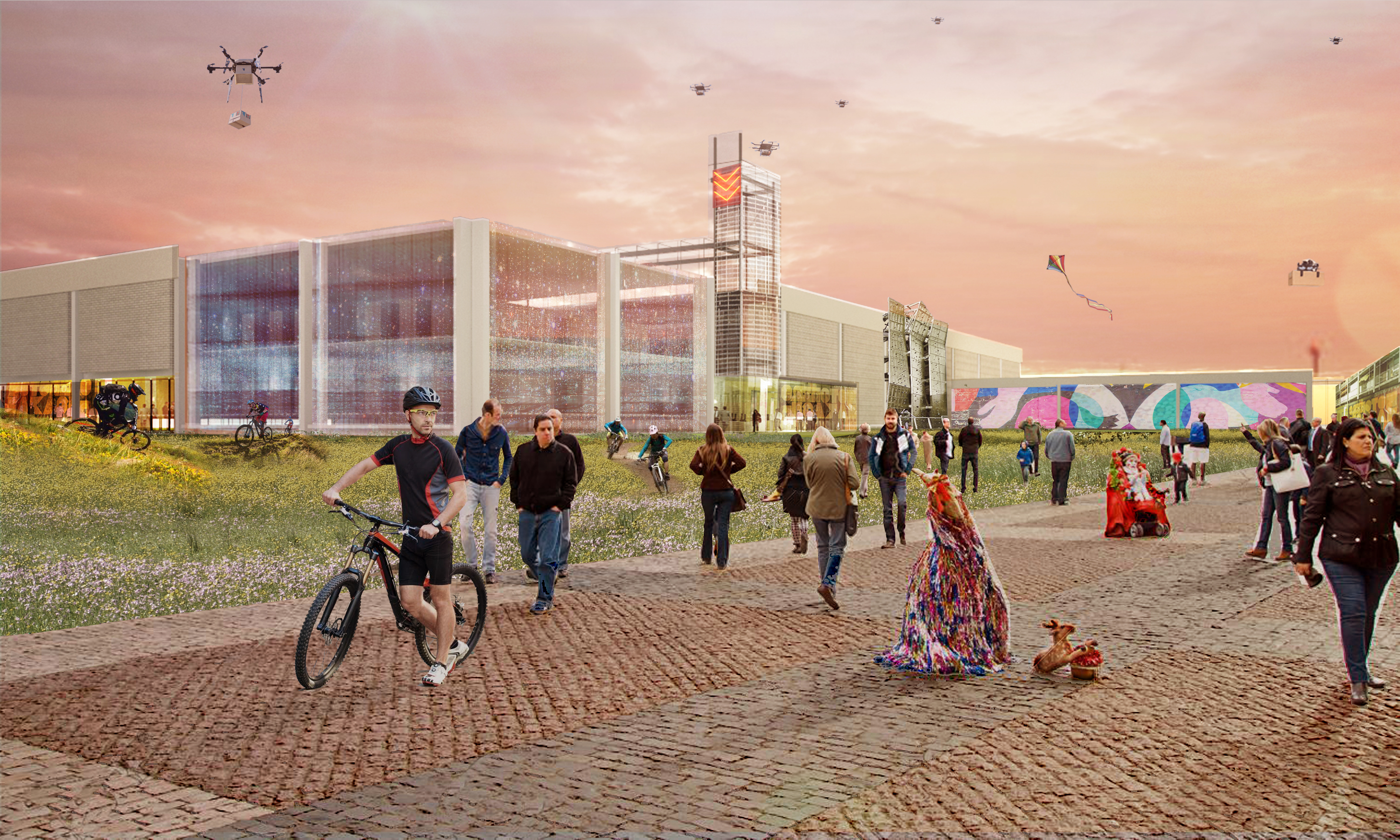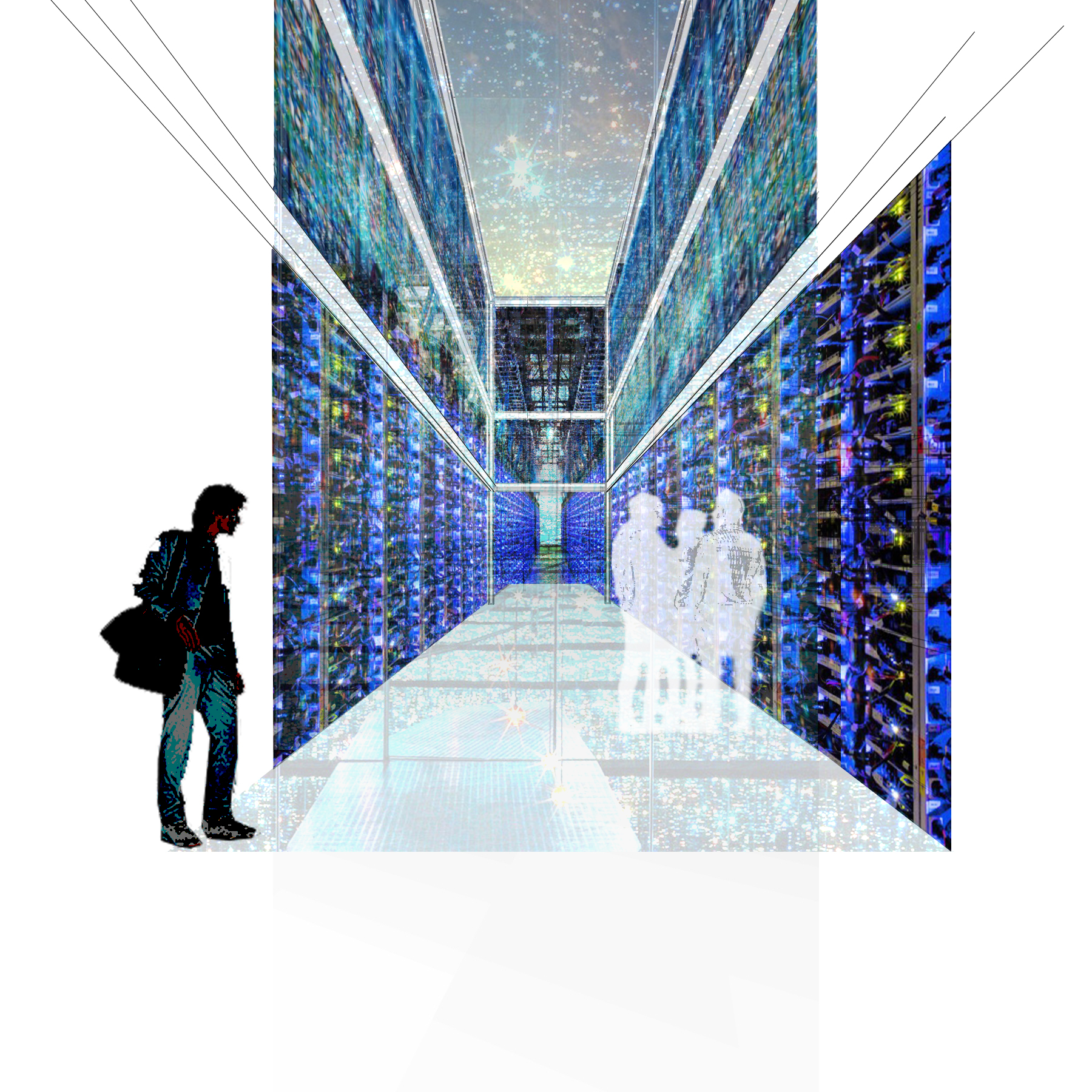 The complex also has a focus on energy production since some programs such as data centers require a tremendous amount of energy for cooling and other mechanical needs. The expansive roof can be populated with solar panels to produce some of the required energy. A double skin façade can act as a heat sink, reducing the amount of mechanical cooling necessary to keep such a facility functioning.